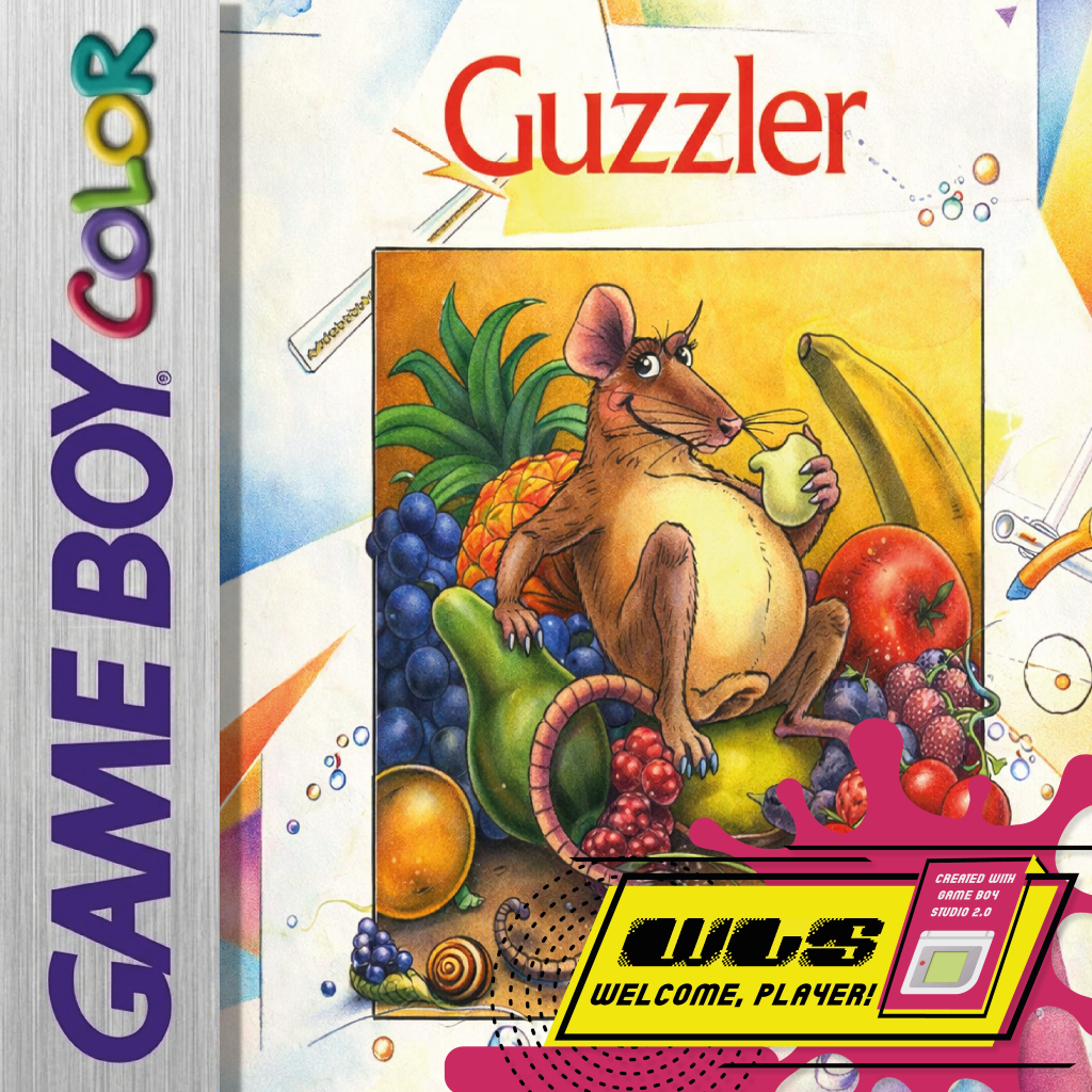 Move GUZZLER around the maze avoiding the Frobblies who patrol the corridors, by picking up key (20 points) wil allow you to enter a food cell and guzzle the item of food inside, however having eaten them Guzzler becomes fat and cannot enter some of the narrower passages, to become thin again he must wait at the maze left/right borders for Deflator Dennis who will deflate him, enabling him to get another key to a food cell. After picking up 4 food, Bonus Barry will appear with the current guzzler bonus letter on his front – if you get Barry, you receive 50 points and enable to enter the next level. Guzzler dies if hit by the Frobblies, contacts Deflator Dennis when thin.
