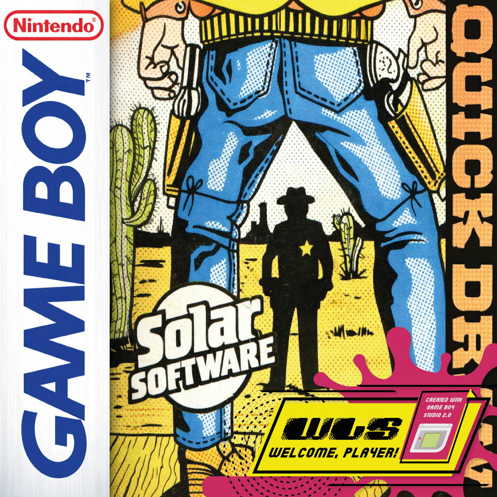 This is a shooting game for 1 or 2 players. Each player has a cowboy with a gun, you must shoot your partner before he shoots you. The first to reach 5 wins. Use the Cacti and passing wagon for cover. Each players score is displayed at the top of the screen.