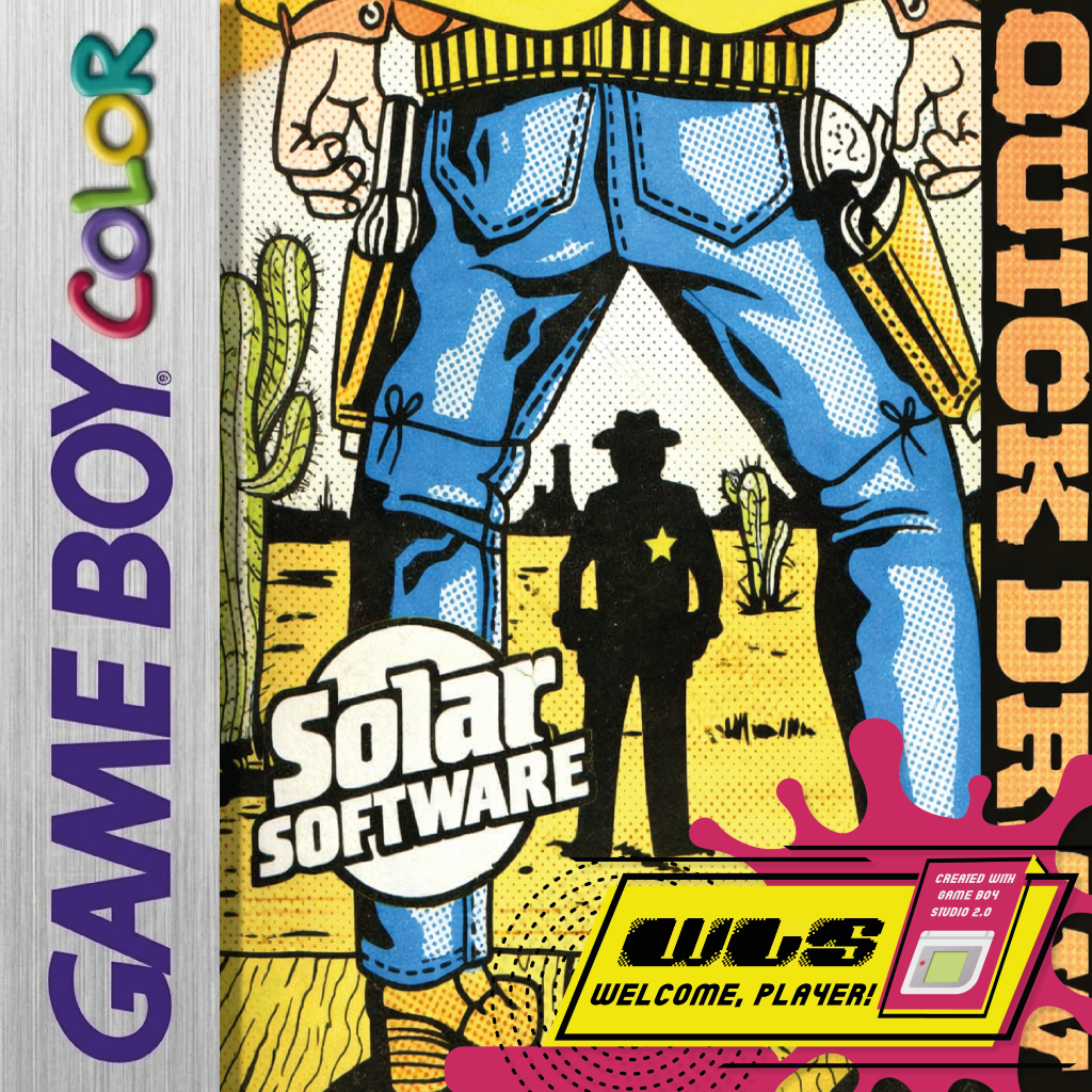 This is a shooting game for 1 or 2 players. Each player has a cowboy with a gun, you must shoot your partner before he shoots you. The first to reach 5 wins. Use the Cacti and passing wagon for cover. Each players score is displayed at the top of the screen.